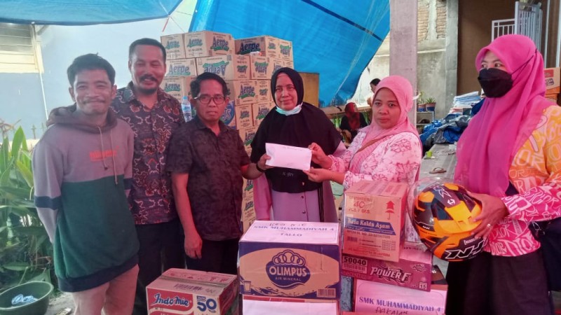 SMK MUHAMMADIYAH 4 TALLO Makassar menyalurkan bantuan soaial kepada korban kebakaran di Jalan Rappokalling Timur Lr 2 RT 07/RW 01, Kelurahan Rappokalling, Kec. Tallo Makassar, Sabtu 1Oktober 2022.